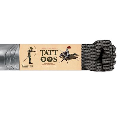 Pakuotėje rasite: 10 žaismingų viduramžių temos laikinų tatuiruočių.