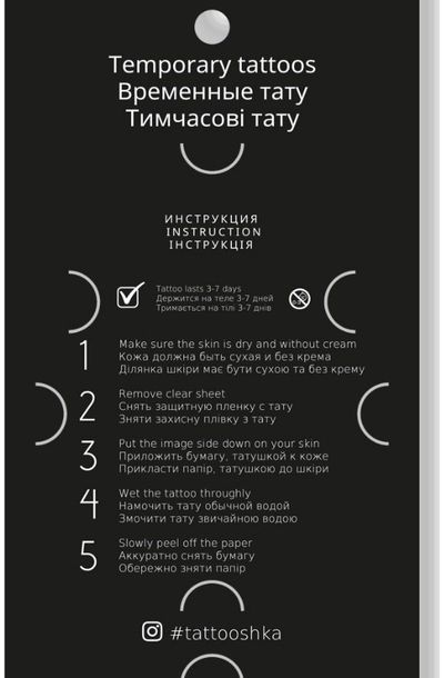 Labai lengvai klijuojasi ant odos, gerai išsilaiko, nealergizuoja. Tatuiruotė taps puikiu akcentu prie Jūsų kasdieninio stiliaus.