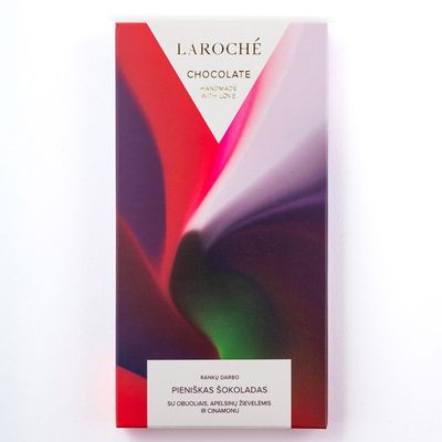 Šokolado klasika su intriga – Laroché N° 6 receptas: stipraus kakavos ir pieno skonio, glotnios tekstūros pieniškas šokoladas su kūną šildančiu cinamonu, traškiais obuolių gabalėliais ir apelsinų žievelių cukatomis. Populiariausią pasaulyje, t.y. pienišką šokoladą, papildėme gerai pažystamais ingredientais, kurių dėka išgavome puikų skonių derinį. Idealus pasirinkimas ieškantiems naujų atradimų, tačiau bijantiems eksperimentuoti.