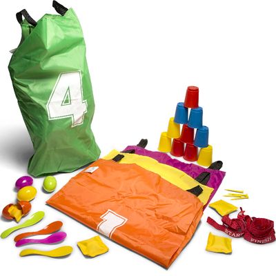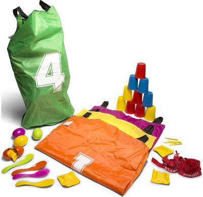 Žaiskite šokinėjimo lenktynes maišuose, nuneškite sveiką kiaušinį šaukštais arba pabandykite išmušti visus puodelius. Idealus rinkinys gimtadienio vakarėliui arba lauko žaidimų dienai su draugais.