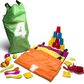 - 4 poliesterio šokinėjimo krepšiai su stipriomis rankenomis (dydis 50 x 70 cm),