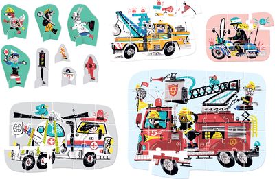 Puiki dovana mažiesiems transporto priemonių gerbėjams. "Vehicles in Action", "Banana Panda" dėlionių rinkinyje yra keturios dėlionės, kurias sudaro vis daugiau detalių (9, 12, 15 ir 35 detalės). Sudėk spalvingą vilkiką, policijos motociklą, gaisro gesinimo transporto priemonę ir greitąją pagalbą su sraigtasparniu.