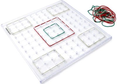 Pagaminta iš patvaraus skaidraus plastiko, 11 x 11 permatoma geolenta idealiai tinka matematikos mokymuisi klasėje ir namuose. Naudokite pridedamas spalvingas elastines juostas ir pridėkite savo, kad matematikos mokytis būtų dar smagiau.