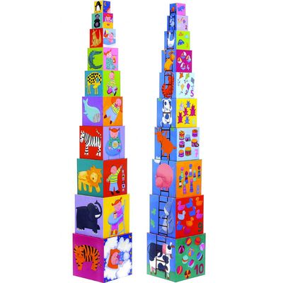 Rinkinį sudaro 10 žaismingų blokų pagamintų iš kokybiško storo kartono, kuris lengvas, o tai reiškia, kad jie bus saugūs jei netyčia nuverstų. Kiekvienas kubas yra ryškių spalvų su žaismingais vaizdais įsimintinais mažiems vaikams - vienas vaizduoja gyvūnus, kitas, kad atlieka jie atlieka skirtingas veiklas, kitas su skaičiais ir objektais, kuriuos reikia suskaičiuoti. Vaikai žaisdami lavins smulkiosios motorikos įgūdžius. Blokai taip pat gali būti naudojami padėti mokyti mažuosius žodžių, skaičių iki dešimties. Puiki dovana pirmajam ar antrajam vaiko gimtadieniui, pirmasis galvosūkis!