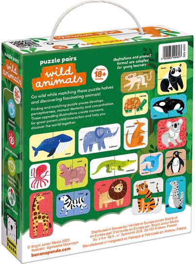 Lavinamoji dėlionė BANANAPANDA Puzzle pairs Wild Animals 18m +