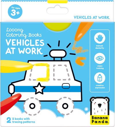 Lavinamoji knygelė BANANAPANDA Looong Coloring Books: Ready to Draw Vehicles at Work
