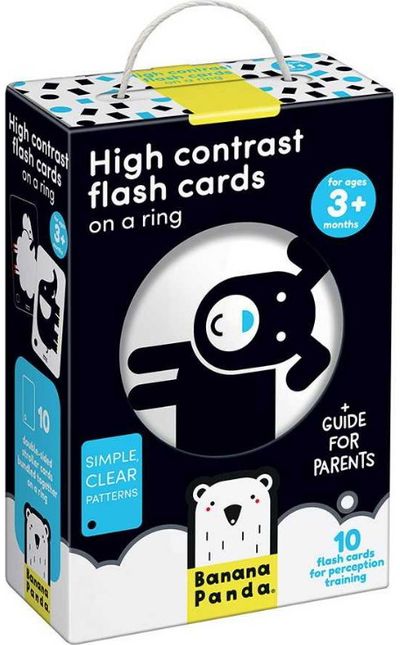 Šios dvipusės kortelės su dvidešimt iliustracijų tinka net mažiausiems kūdikiams, kurie gali matyti didelio kontrasto spalvas ir skirtingus kontūrus. Paprasti, aiškūs modeliai, pritaikyti prie kūdikių vizualinio suvokimo, patraukia kūdikio dėmesį ir palaiko regos vystymąsi. Dėl plastikinio žiedo korteles galite pakabinti prie kūdikio lovos ar vežimėlio.