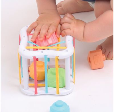 Atviri kubo paviršiai sujungti įtemptomis juostelėmis, labai lengva suimti. Vaikai lavina savo miklumą ir jėgą, kad per juosteles tilptų 10 skirtingų formų.