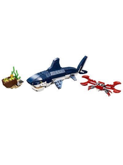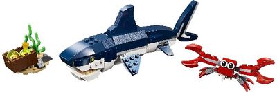 - Mėgaukis 3 konstravimo galimybėmis su šiuo LEGO® Creator „trys viename“ rinkiniu. Sukonstruok ryklį, krabą ir lobį, o tada perkonstruok, kad sukurtum lankstų kalmarą arba plačiaburnį jūrų velnią.