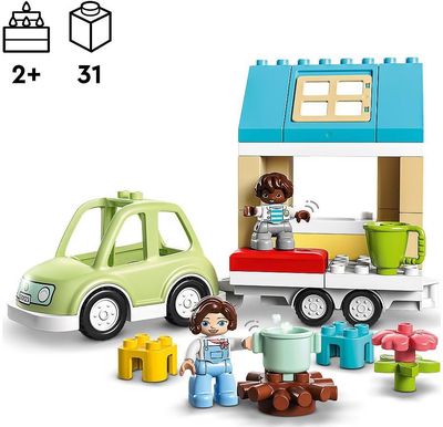 Leiskitės į didelį nuotykį su nuotykių ištroškusiu mažyliu su LEGO® DUPLO® Town Šeimos namu ant ratų (10986). Padėkite mažajam konstruotojui sukurti žavų žaislinį kelioninį namelį, kurį galima prikabinti prie automobilio. Vaikai nuo 2 metų amžiaus gali suskleisti namelį ir važiuoti kur panorėję. Kas žino, kokių įdomių žmonių jie sutiks!