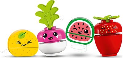 LEGO DUPLO žaislai suteikia vaikams neribotų pramogų, saviraiškos ir pažinimo džiaugsmą. Šis rinkinys įkvepia interaktyvius mažylių ir suaugusiųjų žaidimus jiems vaidinant prekybininką, parduodantį vaisius ar daržoves, ar pirkėją. DUPLO žaidimų rinkiniai leidžia tėvams ir vaikams konstruojant ir žaidžiant kartu kurti reikšmingus lavinimo pasiekimus.