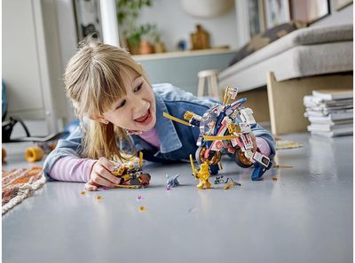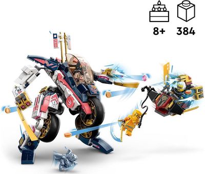 Sora transformuojamas robotas-lenktyninis motociklas (71792) turi viską, ko reikia vaikams nuo 8 metų amžiaus norint atkurti ypač greitą veiksmą iš TV serialo „NINJAGO® Dragons Rising“. Žaidimo rinkinyje yra lankstomas robotas, kurį galima lengvai transformuoti į galingą nindzės motociklą, apginkluotą 2 auksiniais ašmenimis ir 2 smaigų šaudyklėmis.