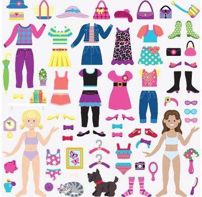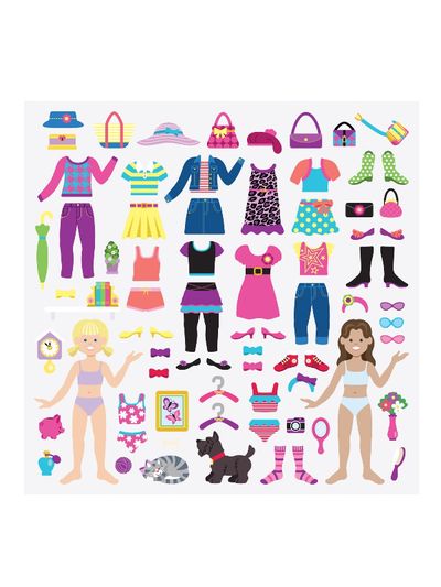 76 lipdukų rinkinys, kuriais galėsite aprengti ir kitaip dekoruoti lėles.