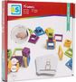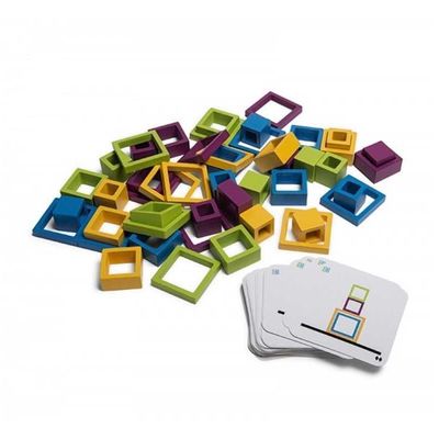 Pakuotėje: 48 skirtingų dydžių detalės, 50 kortelių su skirtingo sudėtingumo lygio konstravimo piešiniais.