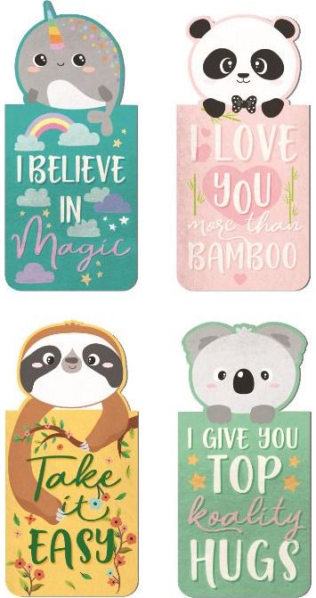 Keturi unikalūs, šmaikštūs magnetiniai knygų skirtukai neleis knygų puslapiams pasimesti. Šie skirtukai bus puiki dovana tikram knygų mylėtojui!