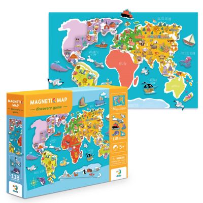 Linksmai žaisdami su šiuo magnetiniu žaidimu išmokite geografijos.