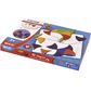 Pakuotėje: 42 skirtingų spalvų putplasčio magnetukai, puslapiai su dėliojimo pavyzdžiais, magnetinė lenta.
