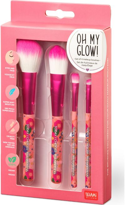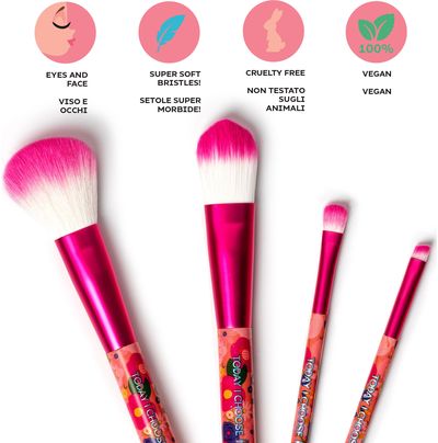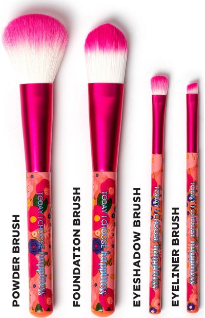 Rinkinį sudaro: 1 pudros šepetėlis, 1 makiažo pagrindo šepetėlis, 1 šešėlių šepetėlis, 1 akių kontūro šepetėlis.
