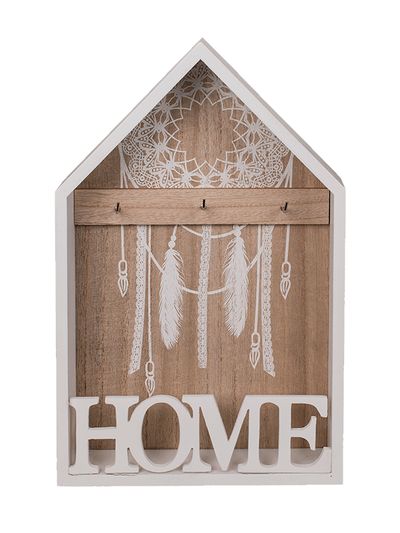 Medinė raktų kabykla DREAM CATCHER. Raktų kabykla, dekoruota sapnų gaudykle ir užrašu HOME, įneš jaukumo bei unikalumo į kiekvienus namus. Dažnai pasitaiko situacijų, kai raktai nusimeta, kur nors užkrenta. Pakabinę raktus šioje raktų kabykloje, visada žinosite, kad jie savo vietoje.