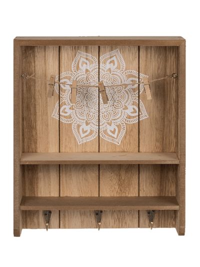 Medinė raktų kabykla MANDALA, 3 kabliukai+4spaustukai, 25x30 cm