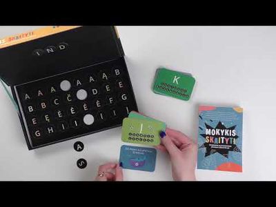Jame rasi 160 didžiųjų ir mažųjų raidžių magnetukų (iš jų galėsi dėlioti žodžius ir sakinius ant magnetinio dėžutės dangtelio), taip pat skaitymo korteles su žodžiais bei sakiniais ir užduočių bloknotą.