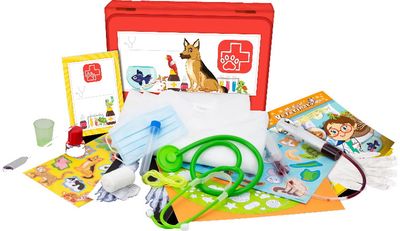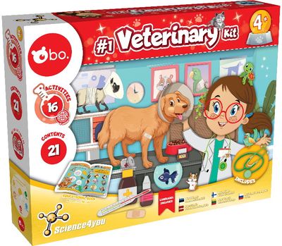 Apsivilk chalatą ir pasijusk tikru veterinaru su šiuo moksliniu rinkiniu! Sužinok, kaip rūpintis augintiniais gyvūnais, kad jie būtų sveiki ir laimingi. „Mano pirmasis veterinaro rinkinys“ – tai smagus, kūrybiškas ir lavinantis rinkinys, skatinantis norą eksperimentuoti ir tyrinėti.