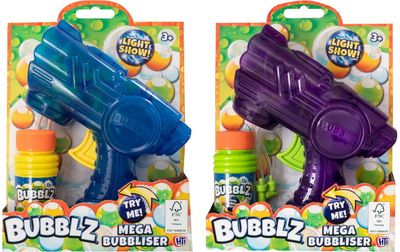 Muilo burbulų šautuvas, kuris vienu kartu išpūs šimtus spalvingų muilo burbulų! Pritvirtink buteliuką, paspausk gaiduką ir džiaukis burbulais! Šautuvas turi ratuką su švieselėmis, rinkinyje yra ir buteliukas burbulų skysčio.