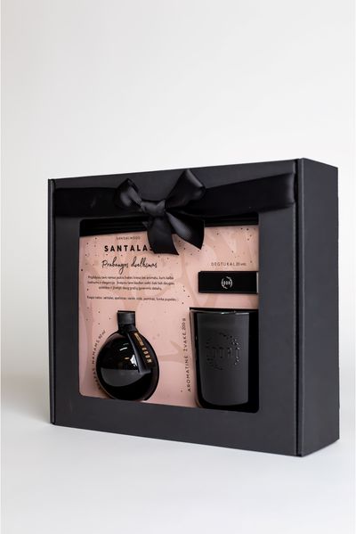 Namų kvapų rinkinys ODORO MOOD SANTALAS (namų kvapas+žvakė+degtukai), 90ml+160g+20 vnt