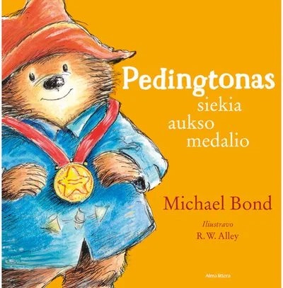 Meškiuko Pedingtono kūrėjo britų rašytojo Michaelio Bondo knyga „Pedingtonas siekia aukso medalio“ – jaukus, juokingas nuotykis mažiausiems. Pedingtonas su Braunų šeima dalyvauja sporto šventėje. Iš čia ir atsklinda geroji žinia: net jei viskas klostosi ne pagal planą, svarbiausia – nepasiduoti ir išlaikyti gerą širdį. Knygą iliustravo apdovanojimų pelnęs vaikų knygų dailininkas R. W. Alley. Į lietuvių kalbą išvertė Vainius Bakas.