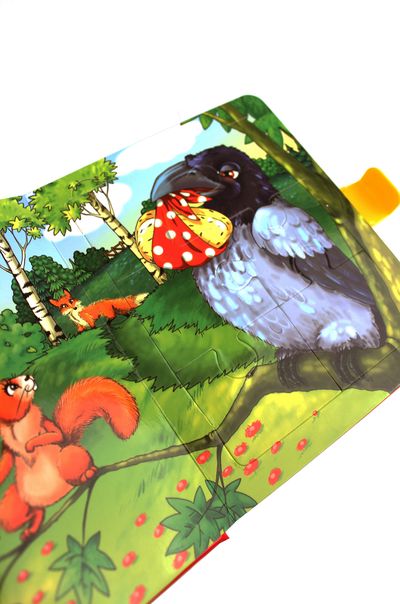 Klausydami tėvelių ar senelių skaitomos pasakėčios apie gudrią lapę ir kvailą varną, vaikai galės dėlioti dėliones ir kartu lavinti vaizduotę, mąstymą, atmintį ir smulkiuosius rankų judesius.