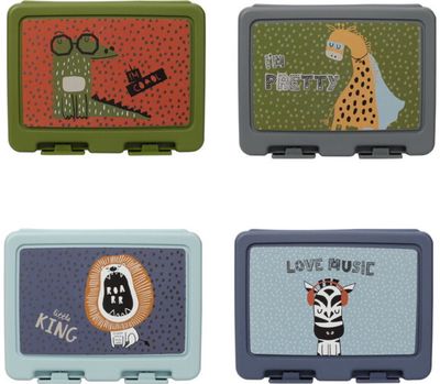 Pietų dėžutė SAFARI ANIMALS su skyreliais ir šakute, įv. rūšys, 18x13,5x7,5 cm