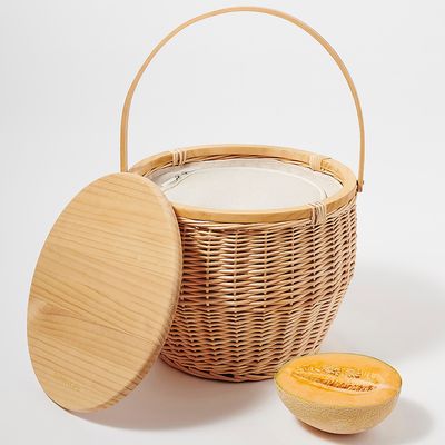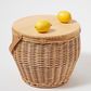 Romantiškai ir patogiai iškylai gamtoje itin pravers šis elegantiškas pintas krepšys su rankena ir raudonmedžio dangčiu, kurį galima naudoti ir kaip padėklą. Skirtas dviem žmonėms, puikiai tinka užkandžiams, gėrimams laikyti.