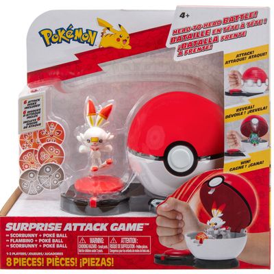 Pokemonų rinkinys „Netikėta ataka“ – tai greitas ir smagus žaidimas! Išsirink pokemoną, atakos diską, juos abu įstatyk į kamuoliuką, o tada trenk kumščiu per mygtuką, įsuk kamuoliuką ir stebėk, kaip iš jo iššoka kovai nusiteikęs pokemonas!