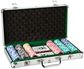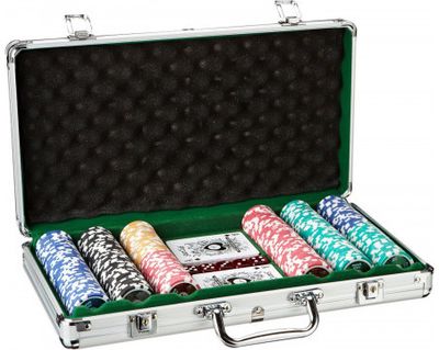 Šis pokerio rinkinys – šauni dovana azartiškam žmogui, taip pat puiki išeitis mėgstantiems pokerį žaisti bet kur ir bet kada. Pokerio lagaminėlį patogu nešiotis su savimi arba laikyti mašinoje. Žetonų skaičius – pakankamas, kad būtų užtikrintas geras ir azartiškas visą vakarą trunkantis žaidimas. Dvi pokerio kortų kaladės su skirtingų spalvų nugarėlėmis. Kortos – kokybiškos ir tvirtos, jos neslysta, tad malonu laikyti rankose, ir, kas svarbiausia, nesusilamdo ir nesusigadina net sužaidus pačią emocingiausią partiją. Kortos standartinio dydžio, jose esantys skaičiai ir paveikslėliai gerai įžiūrimi net esant silpnam apšvietimui, tad žaidėjai nesigadina akių. Rinkinyje yra: 300 įvairios vertės žetonų. Žetonai pagaminti iš specialaus aukštos kokybės plastiko, neslysta rankose, kiekvienas jų sveria 14 gramų, jie yra tokie patys, kokiais žaidžiama tikrame kazino. Dalintojo žetonas 5 žaidimo kauliukai Patogus lagaminas. Į lagaminą puikiai telpa visi pokerio reikmenys, čia juos galima tvarkingai laikyti ir patogiai nešiotis. Vidinė lagamino pusė padengta minkšta medžiaga, kuri saugo žetonus nuo įbrėžimų bei užtikrina, kad nešant lagaminą visos žaidimo dalys liktų savose vietose, yra specialūs grioveliai kortoms.