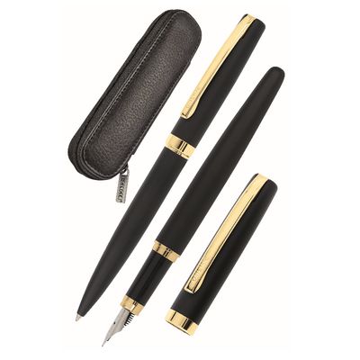 Rinkinys ELEGANZA: plunksnakotis+tušinukas+odinis dėkliukas