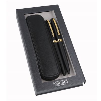 Elegantiško plunksnakočio, tušinuko bei odinio dėkliuko rinkinys dailioje dėžutėje.