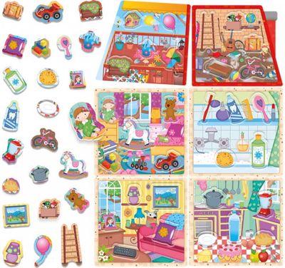 Šis žaidimas skirtas 2–5 metų vaikams. Šiame augimo etape svarbu skatinti mažylio smalsumą ir domėjimąsi jį supančiu pasauliu. Rinkinyje yra iliustruotos kortelės su namo kambariais (virtuve, svetaine, vonios kambariu, miegamuoju, terasa ir palėpe) ir 30 įvairius daiktus vaizduojančių formelių (kiekvienam kambariui skirtos 5 formelės). Vaikams patiks dėlioti daiktų formeles į 6 namo kambarius ir kurti namo interjerą. Visas formeles vaikai gali dėlioti bet kokia tvarka arba iš pradžių jas sugrupuoti ir dekoruoti kambarius vieną po kito.