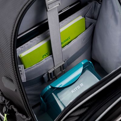 Turi vieną užtraukiamą skyrių su kišenėlėmis viduje kanceliarinėms priemonėms susidėti. Talpus, funkcionalaus išplanavimo.