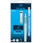 Rašymo rinkinys, kuriame rasite: elegantišką ir patogų dešiniarankiams ir kairiarankiams plunksnakotį, rašalo tryniklį ir 6 mėlynos spalvos rašalo kapsules.