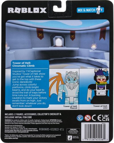 Perkelk į realybę smagiausius „Roblox“ nuotykius su šauniu rinkiniu ir 2 herojais bei smagiais aksesuarais. Tarpusavyje derink ir keisk figūrėlių dalis bei aksesuarus ir susikurk išskirtinį „Roblox“ herojų. Kiekviena figūrėlė turi kodą, su kuriuo galima atrakinti išskirtinį virtualų turinį. Surink visą „Roblox“ kolekciją!