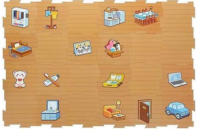 *mTiny Kodavimo Rinkinio Mano Pasaulio Žemėlapio Pagrindiniai Elementai: Šeimos scenos, nešiojamasis kompiuteris, dantų pasta, kelioninė lagaminas ir kiti kasdieninio gyvenimo scenos elementai.
