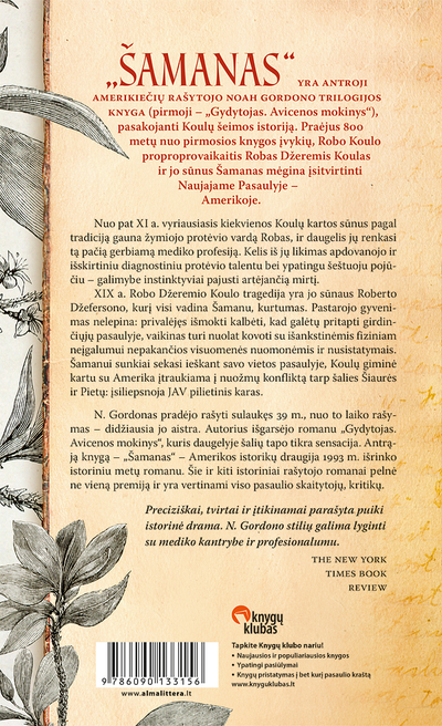 Autorius antrojoje dalyje nukelia veiksmą į XIX a. Tai ne tik pasakojimas apie Robą Džeremį Koulą, mediką, atvykusį į Naująjį pasaulį, ieškantį savo vietos, kovojantį už išlikimą ir įsitvirtinimą, jo pagarbą indėnams, šeimą, sūnų Robertą Džefersoną, jo kurtumą. Gydytojo praktiką, mirus tėvui, perima sūnus, vadinamas Šamanu. Jis sunkiu darbu, užsispyrimu ir didelių pastangų dėka gali mokytis, dirbti ir bendrauti, nors yra kurčias. Sukuria šeimą, steigia ligoninę. Romano pabaiga gera, skaityti buvo įdomu. Laukia tęsinys.- trečioji knyga.