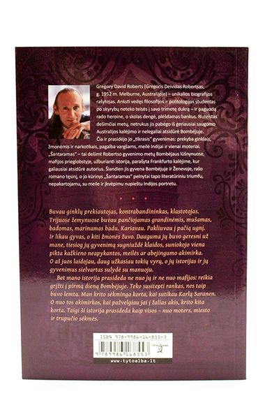 Gregory David Roberts (Gregoris Deividas Robertsas; g. 1952 m. Melburne, Australijoje) – unikalios biografijos rašytojas. Dar studijuodamas filosofiją ir politologiją, jis po skyrybų prarado teises į savo trimetę dukrą. Jaunasis tėvas paguodą rado heroine, o skolas padengė, plėšdamas bankus. Nuteistas dešimčiai metų, netrukus jis pabėgo iš geriausiai saugomo Australijos kalėjimo ir nelegaliai atsidūrė Bombėjuje. Čia ir prasidėjo jo „tikrasis“ gyvenimas: prekyba ginklais, žmonėmis ir narkotikais, pagalba vargšams, meilė Indijai ir vienai moteriai. „Šantaramas“ – tai dešimt Robertso gyvenimo metų Bombėjaus lūšnynuose, mafijos prieglobstyje, užburianti istorija, parašyta Frankfurto kalėjime, kur galiausiai atsidūrė autorius. Šiandien jis gyvena Bombėjuje ir Ženevoje, rašo romano tęsinį, o jo kūrinys „Šantaramas“ pelnytai tapo literatūriniu triumfu, nepakartojamu, su meile ir įkvėpimu nupieštu Indijos portretu.