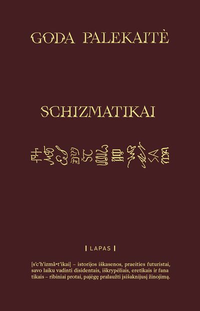 Schizmatikai – tai 10 fiktyvių pasakojimų apie pamirštas istorines asmenybes. Menininkės Godos Palekaitės knygos personažai – savamokslė dinozaurų atradėja Mary Anning, dangaus architektūrą empiriškai tyrinėjęs mistikas Emanuelis Swedenborgas, žydų-musulmonų rašytojas, orientalistas Essadas Bey – prikeliami naujam gyvenimui tarp history ir story svyruojančiuose tekstuose.