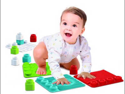 Naudodami 4 "maxi" dalis sudėkite su vaiku kilimėlį. Žaidimas paskatins kūdikį ropoti ir tyrinėti. Dalių paviršius yra skirtingų tekstūrų, kurios skatins vaiko lytėjimą, sensorinius įgūdžius, akių ir rankų koordinaciją, vaizduotę. Vaikas galės sujungti dalis arba sustatyti daugybę bokštų.