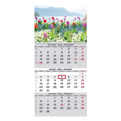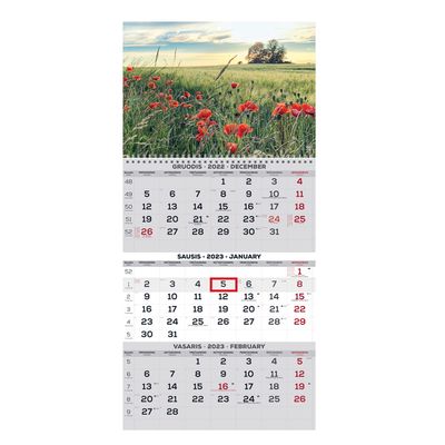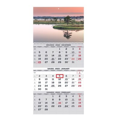Sieninis kalendorius TRIO 2025 trijų dalių su slankikliu, įv. dizainai