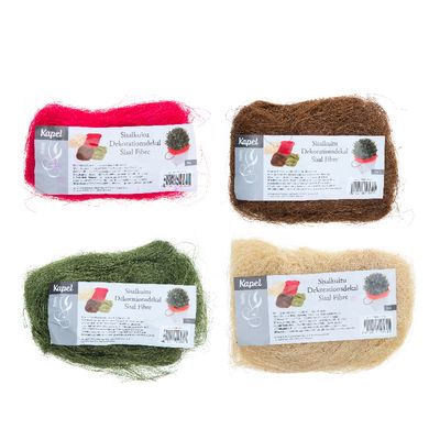 Sizalio pluoštas, skirtas papuošimams, gėlių kompozicijoms, rankdarbiams ar dovanoms pakuoti.