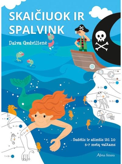 Žaviosios undinėlės ir pašėlę piratai prarado spalvas. Ar gali juos išgelbėti? Atlik skaičiavimo užduotis, o gavęs atsakymą spalvink nurodytomis spalvomis ir padėk veikėjams atgyti!