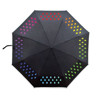 Juodas skėtis, dekoruotas stilingu lietaus lašelių raštu. Lietaus lašeliai tampa spalvoti, kai skėtis sušlampa. Skėčiui išdžiuvus lašeliai vėl tampa balti. Rankena minkšta ir neslystanti, todėl skėtį itin patogu naudoti. Puiki dovanos idėja norint nustebinti artimuosius!