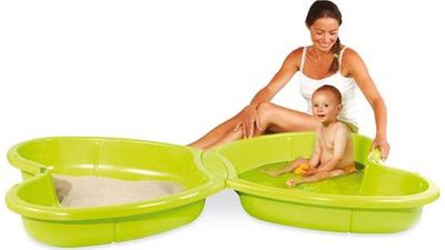 Dviejų dalių smėlio dėžė, kurios vieną dalį galite panaudoti ir vandens pramogoms! Galėsite ne tik prileisti vandens prijungiant laistymo žarną, bet ir pasinaudoti drenažo kamštuku, kad lengvai išleistumėte vandenį. Dėžė sulanksoma, tad sutaupoma vietos transportuojant.